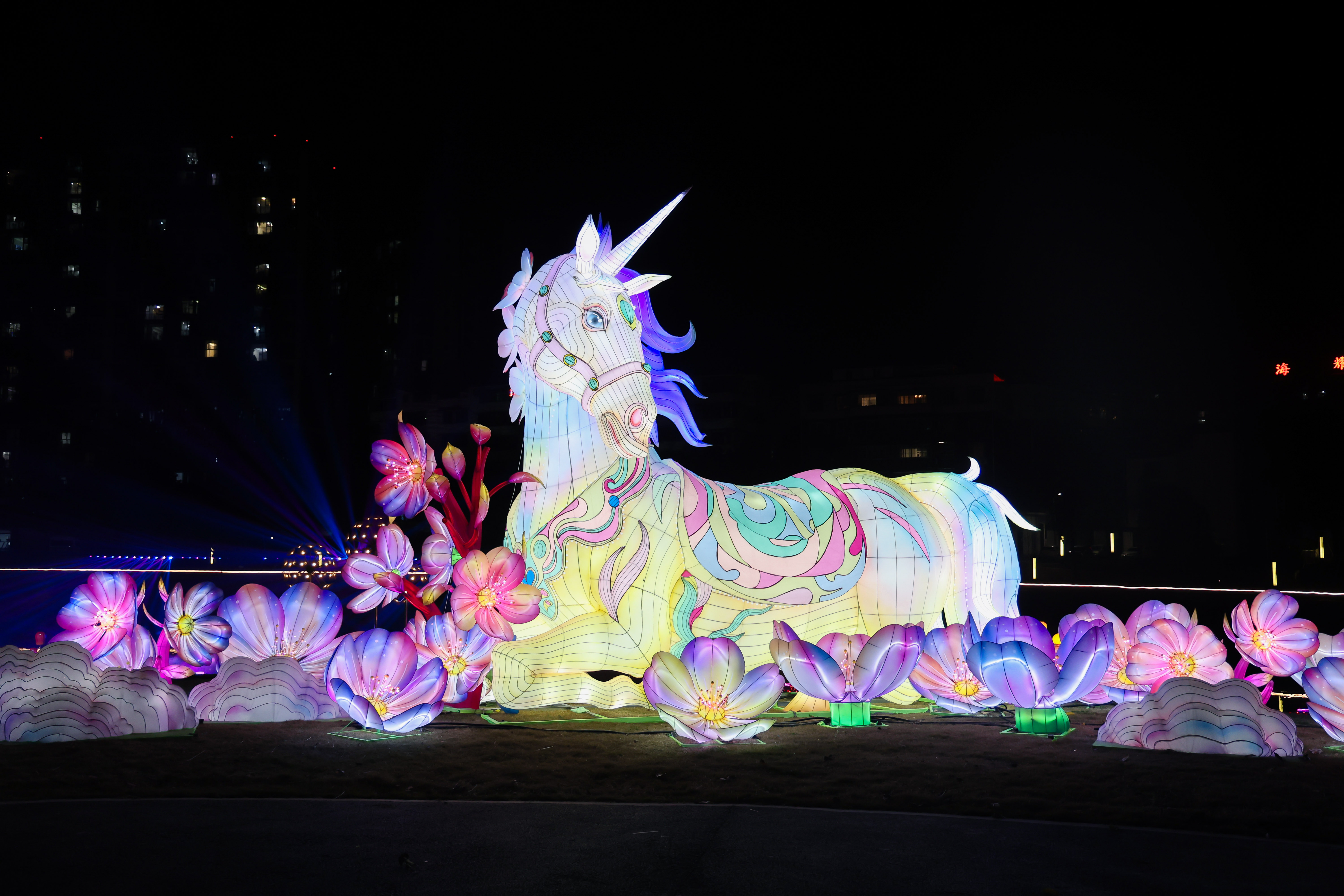 在丹棱县沧浪公园,步地差别的彩灯已准备就绪,静候夜幕驾临后盛开光华。尤其引东说念主注见解所以“马”为主题的系列灯组——“马到告捷”“随即有钱”等造型纯真、寓意吉利,将新春的喜庆氛围衬托得额外浓郁。