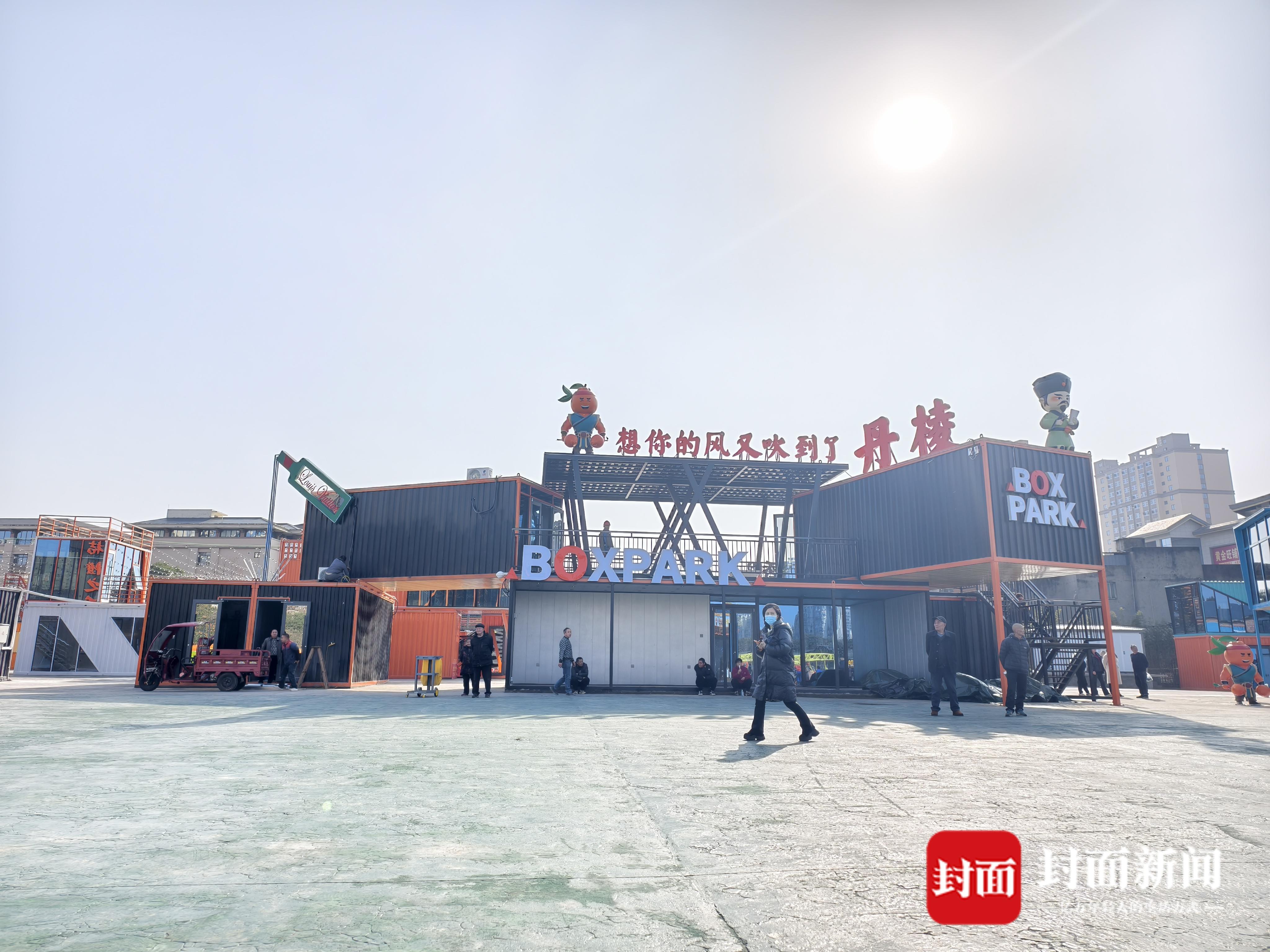 在舞台的对侧,两家商铺正在装修,新奇的是,商铺居然由集装箱构成。